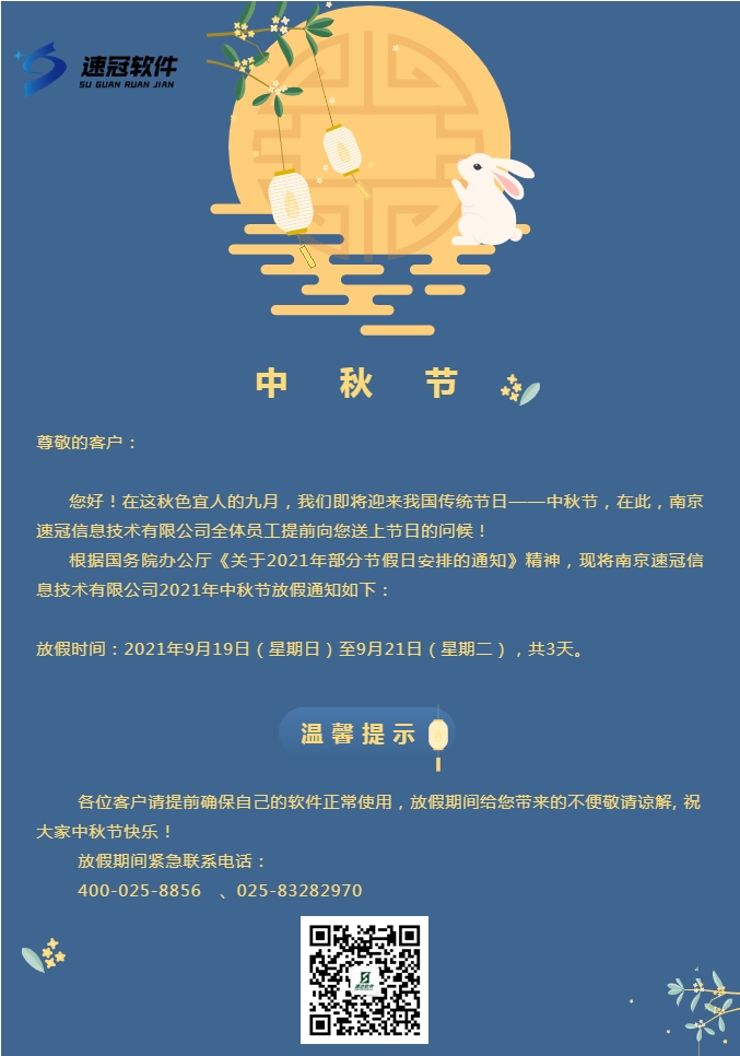 南京速冠软件2021年中秋节放假通知_天耀新闻_速达软件官网_速达3000_速达5000_速达ERP系统_速达财务管理_速达OA_速达V3_销售管理_速达V5