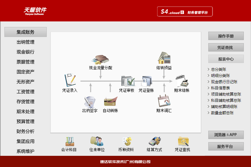 凭证录入、出纳签字、现金流量分配、自动转账、凭证审核、凭证的登账、结转损益、期末调汇、期末结帐 |
