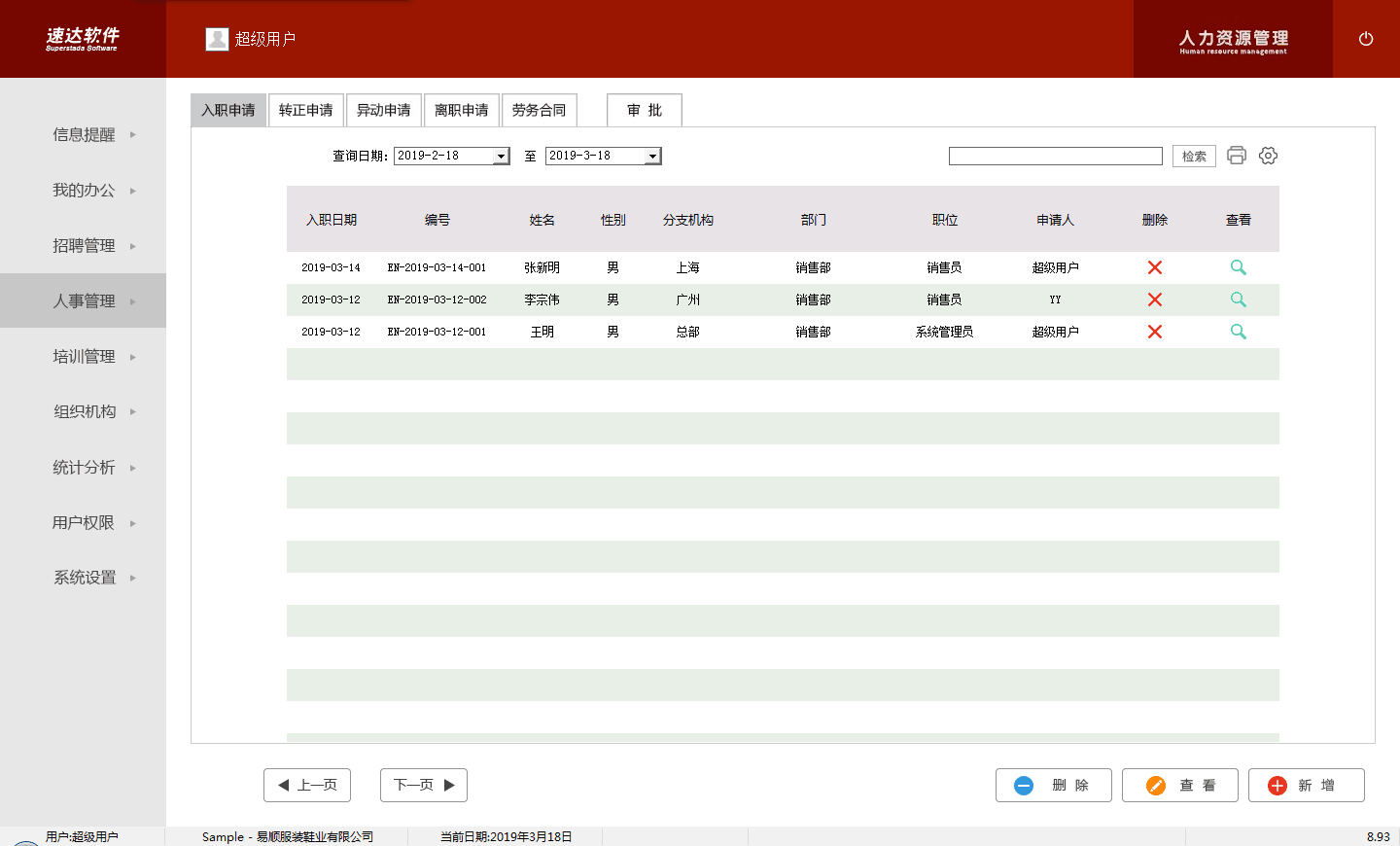 审批分析、招聘工作分析、培训情况统计、编制分析、职员结构、职员流动、人事轨迹、业务流水 |