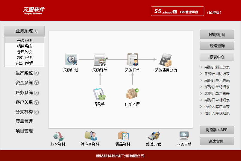 采购计划、采购订单、请购单、采购开单、估价入库、采购费用分摊 |